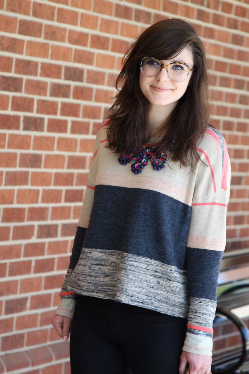 This top is a little thicker so perfect for these weird days when you need an extra layer. Plus, it has some good luck in there for you as I wore it for my first day of work at the auction house last year!